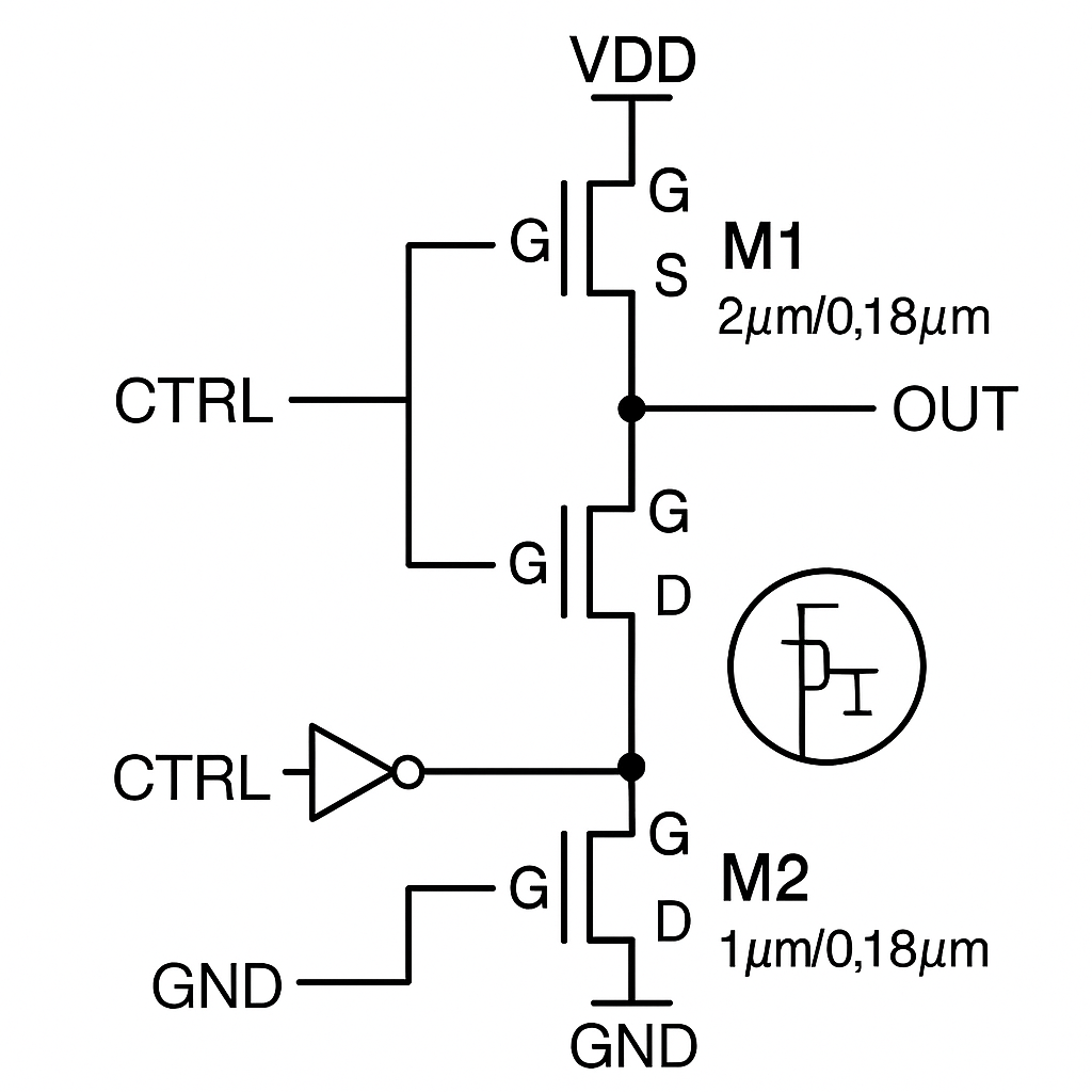 Note: Always ensure the bulk terminals are properly connected: PMOS bulk to VDD, NMOS bulk to GND.