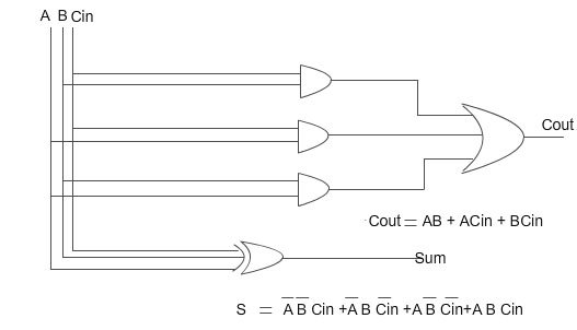 Figure 2:Gate diagram of combinational circuit(1 bit full adder)