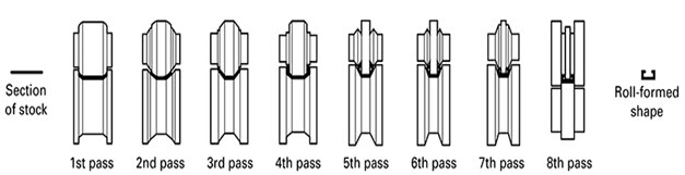 Figure: Eight-roll sequence for the roll forming of a box channel