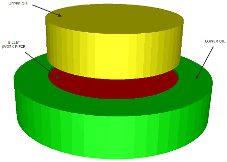The billet used is a machined thin cylindrical metal (e.g., 100 mm diameter and 10 mm height).