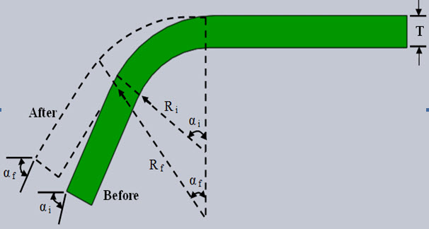 - Ri and Rf are the initial and final bend radii, respectively.