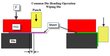 Figure: U Bendingc) Wiping Die Bending: Also known as flanging. One edge is bent to 90 degrees while the other is restrained.
