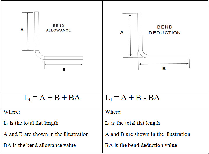 In practical terms, if we want a workpiece with a 90-degree bend in which one leg measures A, and the other measures B, then the total length of the flat piece is NOT A + B as one might first assume.