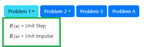 - First click on "Problem 1" button (Fig. 2) and select the input signal (Unit Step or Unit Impulse).