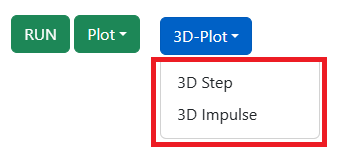 - Click on '3D-Plot' button then on either '3D Step' or '3D Impulse' (depending on the type of input signal, chosen in step 1) to observe the 3D response plot for that particular input signal and all the ζ values chosen.