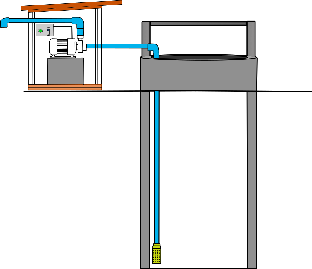 Sounding Tube, surveyor tape, pump, FRP tank, stopwatch etc.