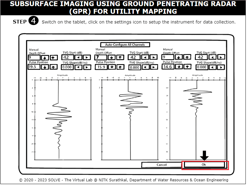 Click on the play button on the screen and start moving the GPR device to log the data.