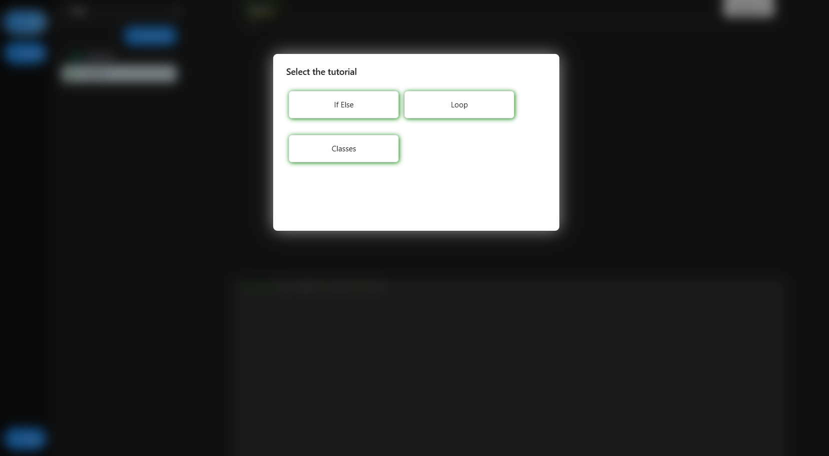 Step 3: After creating the file, a window will appear asking you to select a tutorial. Choose one option from If Else, Loop, or Classes.