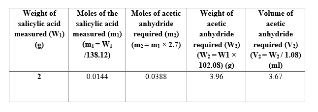 Calculation for the amount of acetic anhydride needed for a given amount of salicylic acid :