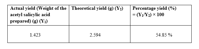Theoretical yield = 0.0144 moles = 2.594 grams of acetyl salicylic acid.