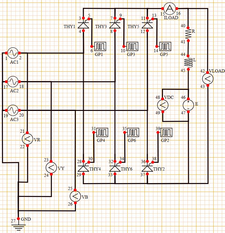 AC Source – 3, DC Source – 1, Thyristor – 6, Gate Pulse - 6