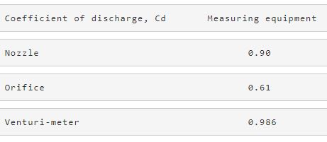 Write the Cd value for the following flow measuring equipment as in Table (1).