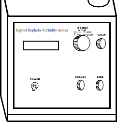 Place the sample cell with distilled water in the Nephelometer. Set readings to zero by adjusting coarse and fine knob.