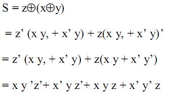 It can be also implemented with two half adders and OR gate. As shown in fig 2.The S output from the second half adder is the exclusive-OR of z and the output of the first half adder, giving
