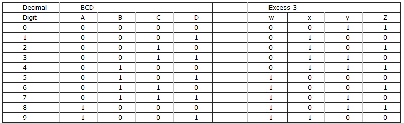 It is a non-weighted code. It is also a self-complementing BCD code used in decimal arithmetic units. . The Excess-3 code for the decimal number is performed in the same manner as BCD except that decimal number 3 is added to the each decimal unit before encoding it to binary.