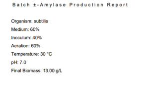 - Also, the fermentation monitoring graph at the bottom displays the changes in parameters, i.e. enzyme production over time and provides a quantitative tracking of the fermentation process.