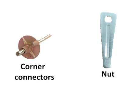 - Corner connector: These are provided to ensure strong connection in the corner, connecting side stops to back or front panels.