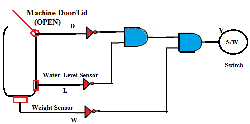 The Boolean expression Y for the given circuit diagram of the washing machine is ___________.