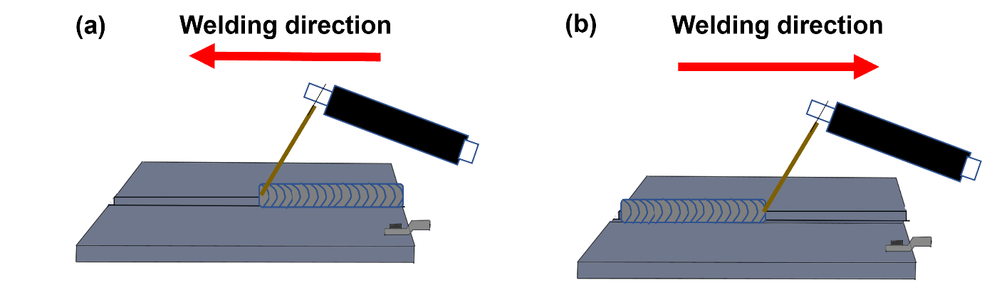 Figure 11: Schematic of (a) Forehand welding (b) Backhand Welding